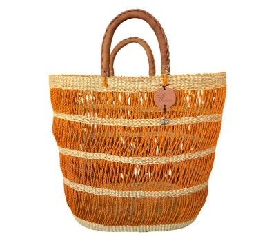 This Bolga Cosmo Mesh Basket is artisan hand woven from sundried elephant grass in Ghana.  A unique bag for your daily requirements, it has deep sides constructed with mesh weave and a double handle for easy access.  It is perfect for the market or beach.