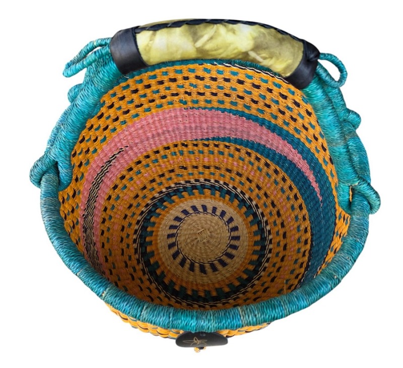 | Round Market Basket | beach, earthy colours, Ghana, Hand Woven, market, natural fibres, Round Market Basket, shopping, single fixed handle |