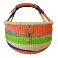 Hand woven in Ghana from elephant grass, this Bolga U-shopper basket has a double handle and narrow profile making it portable and accessible. The higher ends offer improved security. It is the perfect accessory for market, beach or shopping.