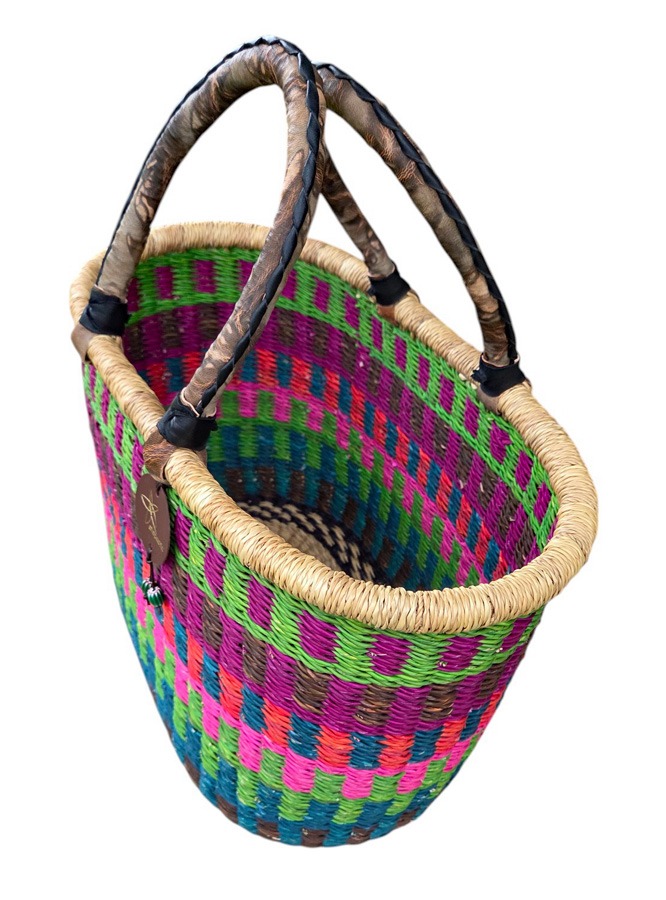 SKU: OB03 Categories: Bolga Baskets, Bolga Oval Baskets, Sales & Seconds Tags: African, African art, African baskets, artisan, artisan made, Basket, boho, bolga baskets, colors, colours, earthy, garden tote, Ghana, Ghana baskets, grass baskets, Hand Made, hand woven, tote, Woven, woven baskets